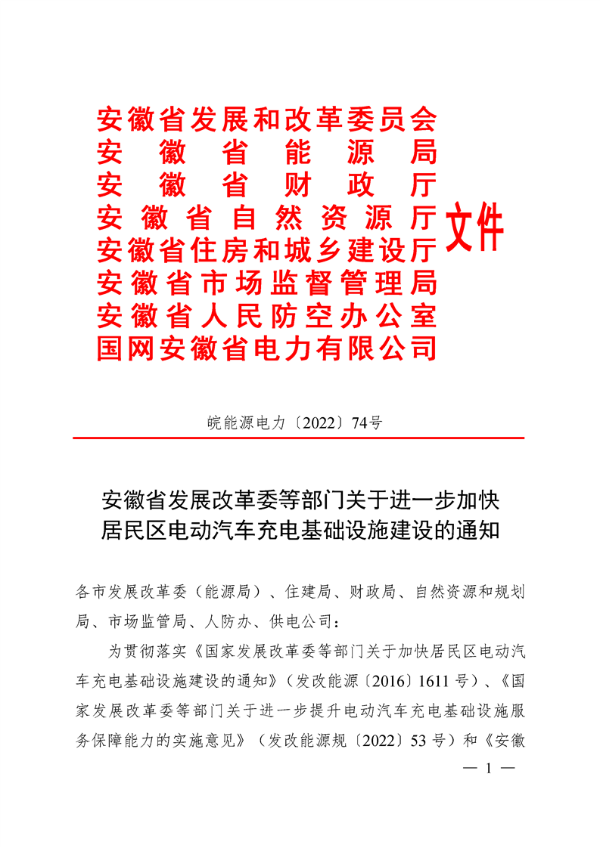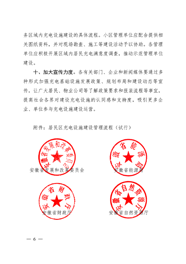 安徽省发展改革委等部门关于进一步加快居民区电动汽车充电基础设施建设的通知