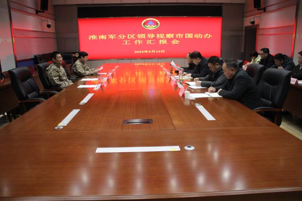 2月14日上午,淮南市军分区政委魏筱春一行调研市国动办。